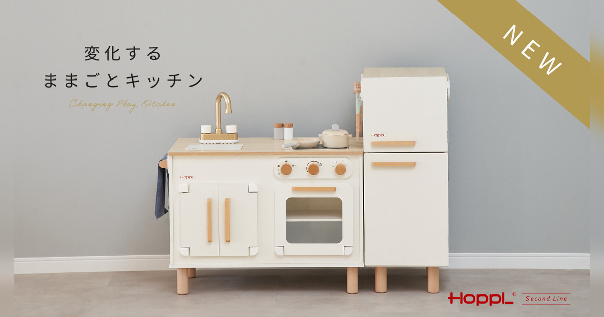 「子育てにデザインをプラスする」をコンセプトにベビーキッズブランド「HOPPL(ホップル)」を展開する株式会社Noz(所在地:兵庫県宝塚市、代表取締役社長:野澤 重幸 のざわ しげゆき)は、新商品「変化するままごとキッチン」の先行予約受付を7月18日(金)より開始いたします。公式オンラインショップでは、発売を記念した限定特典をご用意しています。「変化するままごとキッチン」は、HOPPLの新しい製品ライン「セカンドライン」の第一弾となる新商品です。商品の発売日は8月1日(金)です。
