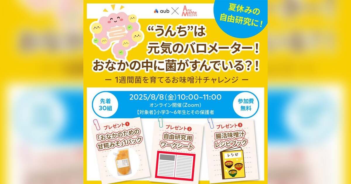 そして、AuBとエニママは「家族で取り組む腸活」をテーマに、夏休みの期間を活かしたウェルネスプログラムを実施します。親子で楽しく学べる「自由研究にも活用できるプログラム」と、ママ自身が日常的にコンディショニングの知識を育てるための「オンライン講座」の2本立てです。お子さまと一緒に”うんち”や腸内環境を観察することで、自分自身で体調変化のサインに気づく力を育てます。そして、ママ自身も「なんとなく不調」を言語化・可視化し、自分にあったコンディションを整えるヒントを得ることができます。 無理なく、楽しく、家庭の中から心と体を整えていく、そういった 両社は、”ママが最良のコンディションで過ごす毎日”を実現するための取り組みを開始します。