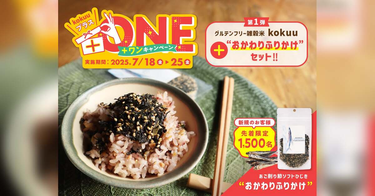 株式会社TeN(本社:神奈川県横浜市、代表取締役:廣瀬由典)が運営する「イミコトマルシェ」は、食を通じた「美味しい体験」の提供を追求し、この度、大好評のうちに完売したオリジナルふりかけの待望の再販を決定いたしました。今回は、イミコトマルシェの看板商品であるグルテンフリー雑穀米「kokuu」とセットになった「kokuu+おかわりふりかけセット」として、プラスワンキャンペーンを実施。新規のお客様へ先着1,500名様限定で販売を開始します。
