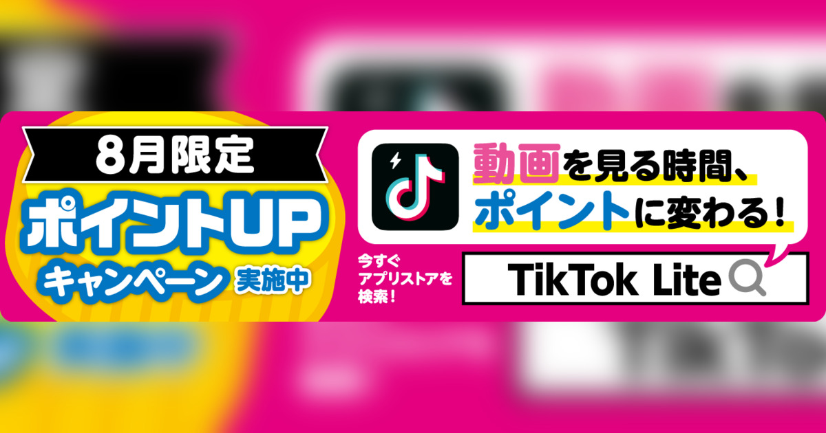 【キャンペーン名】TikTok Lite 8月限定ポイントアップPRキャンペーン
