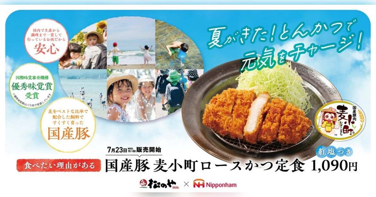 株式会社松屋フーズ(本社:東京都武蔵野市、代表取締役社長:瓦葺 一利)では、とんかつ専門店の「松のや」におきまして、2025年7月23日(水)午後3時より、「国産豚麦小町ロースかつ」を発売いたします。