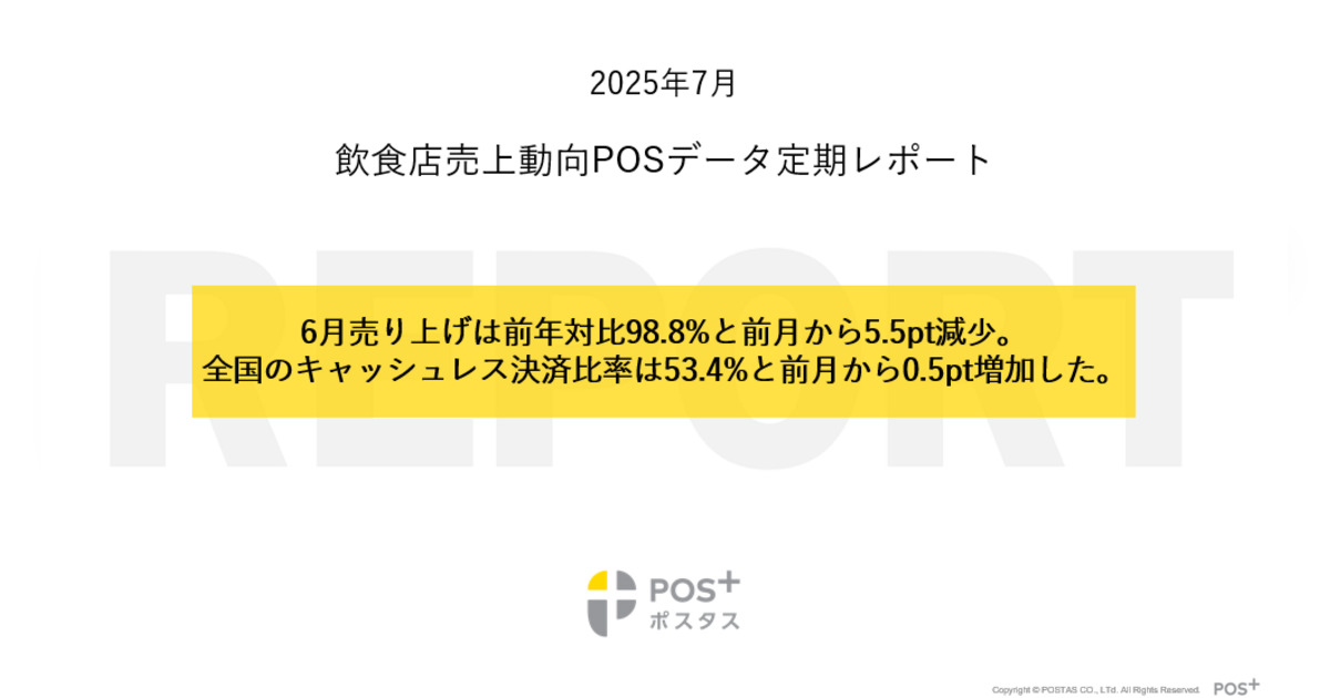 ポスタス株式会社(本社:東京都中央区、代表取締役社長:本田 興一、以下:ポスタス)は、本日、2025年6月度の飲食店売上動向についてPOSデータを基に集計した結果を公開しました。