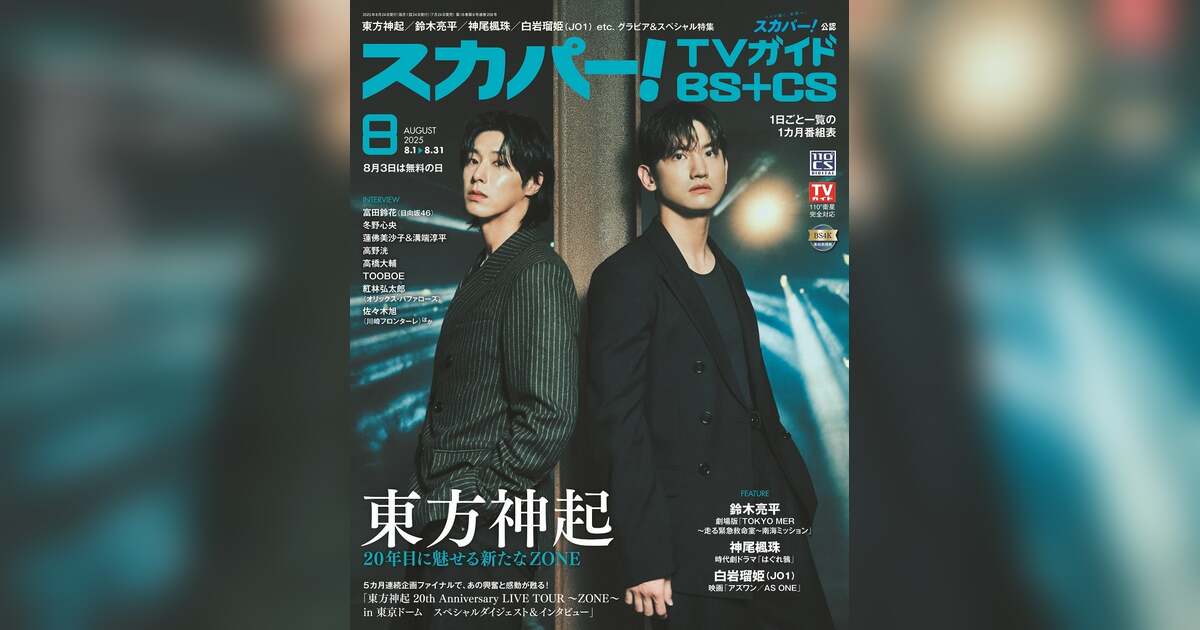 7月24日発売の「スカパー!TVガイドBS+CS2025年8月号」に、東方神起が登場する。