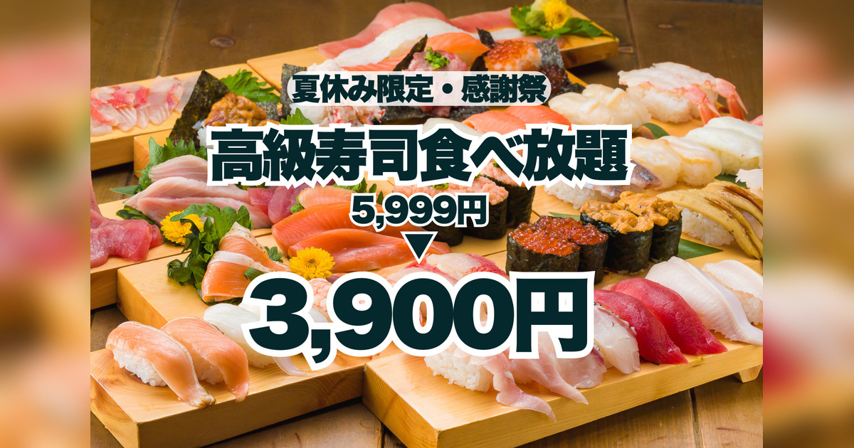 株式会社Globridge(グロブリッジ、本社:東京都港区赤坂 代表取締役:大塚誠)が運営するFUJIYAMA TOKYO 秋葉原本店は、2025年7月18日(金)~同年8月31日(日)の期間中、1日5組様限定で、通常5,999円(税込6,598円)の高級寿司食べ放題プランを、サンキュー価格の3,900円(税込)で提供いたします。