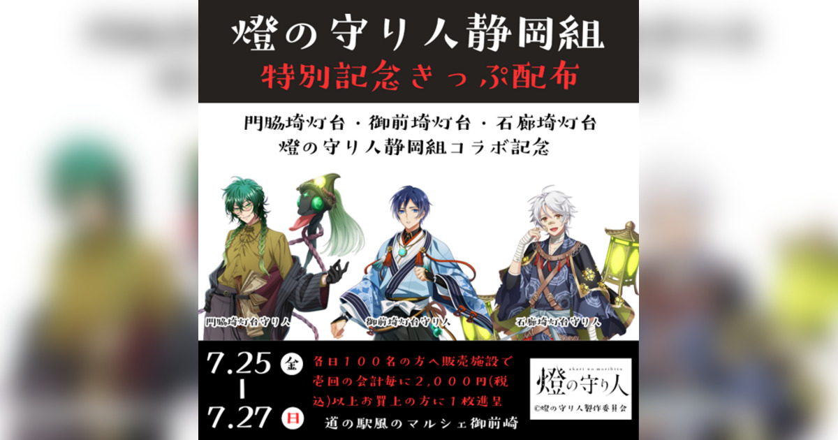 燈の守り人のキャラクター活用権を有する静岡県御前崎市の地域活性化を目的とし、6月にキャラクターがデザインされた特別な「道の駅記念きっぷ」を配布。そしてこの度、静岡県内の『燈の守り人』キャラクター3人が集結したコラボグッズの販売・配布を記念し、第2弾の配布が決定しました。今回も、道の駅「風のマルシェ御前崎」にて3日間限定の配布となります。