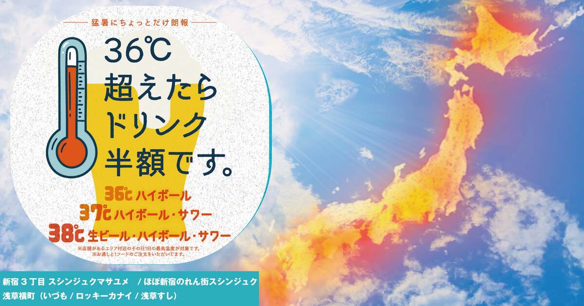 38℃を超えたら 生ビール・対象ドリンクのハイボール・サワー