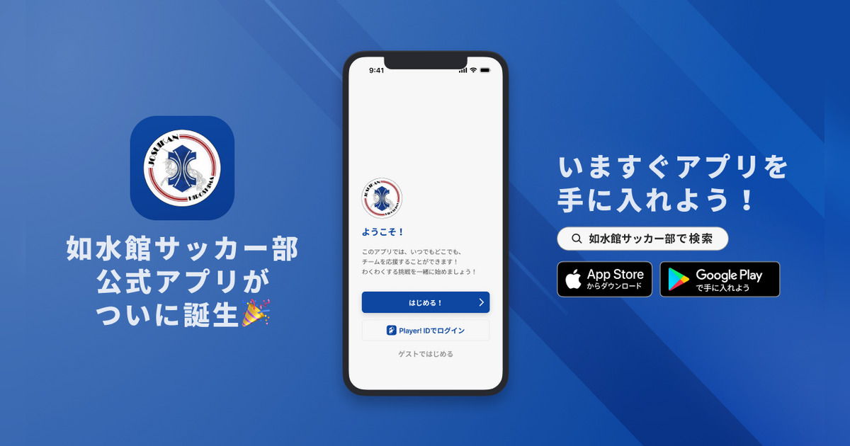 AppStoreもしくはGooglePlayで「如水館サッカー部」と検索!