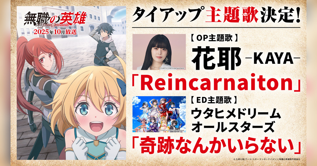 これらの曲は同社が刊行するアース・スターノベルの人気作品『無職の英雄 別にスキルなんか要らなかったんだが』を原作とする2025年10月放送TVアニメのオープニング/エンディング曲タイアップとなります。