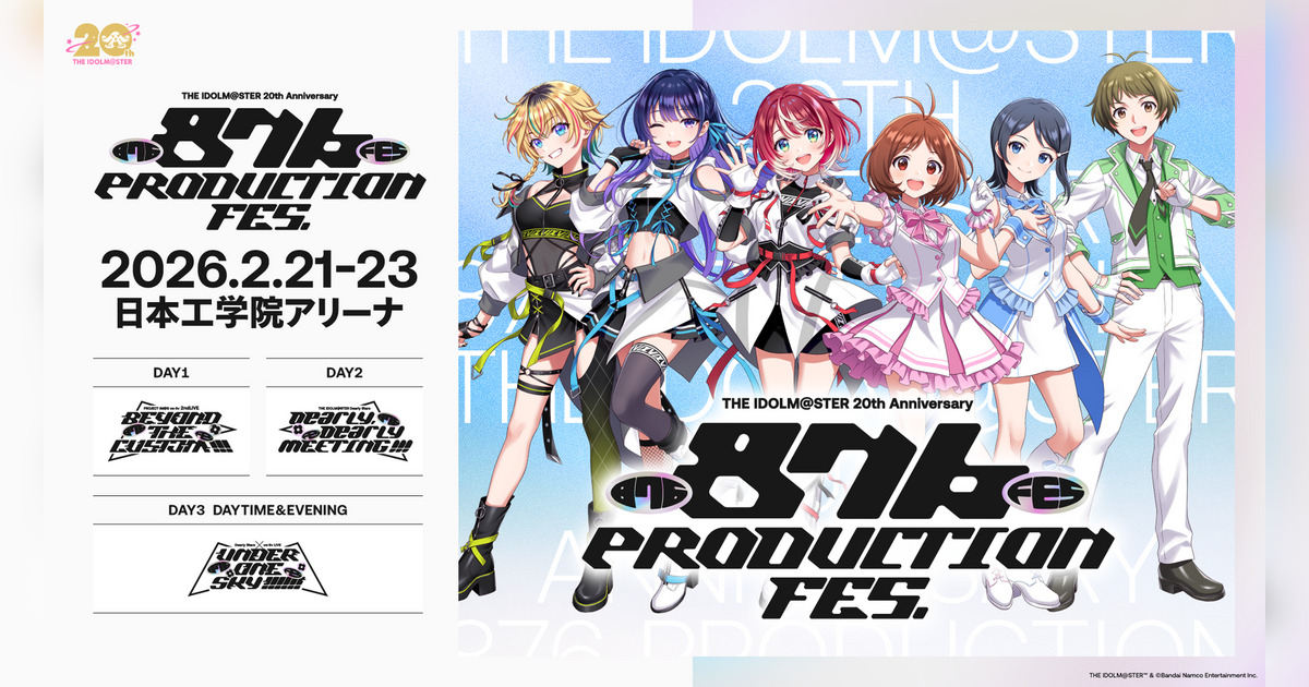 株式会社バンダイナムコエンターテインメントは2026年2月21日(土)~23日(祝・月)の3日間、日本工学院アリーナにて、『アイドルマスター』シリーズ20周年記念として「876 PRODUCTION FES.」を開催いたします。