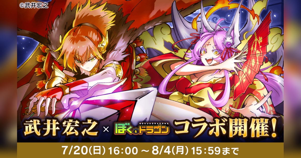 株式会社ドリコム(本社:東京都品川区、代表取締役社長:内藤裕紀、以下「ドリコム」)のグループ会社の株式会社スタジオレックス(本社:東京都品川区、代表取締役社長:相見 伸之介、以下「スタジオレックス」)提供の新感覚スマホRPG『ぼくとドラゴン』において、2025年7月20日(日)より、漫画家『武井宏之』氏とのコラボキャンペーンを実施することをお知らせいたします。