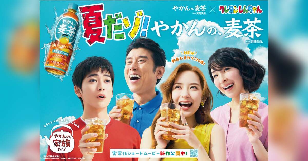 さらに、ショートムービーの告知動画を新CM「野原一家ファイヤーだゾ!」篇として全国で放映を開始するほか、描きおろしクレヨンしんちゃんオリジナルカードがもらえる映画連動キャンペーンも開始します。ますます麦茶の需要が高まる夏に、“めんどうだけど、愛おしい家族の物語”とともに、「やかんの麦茶」の魅力をお届けします。