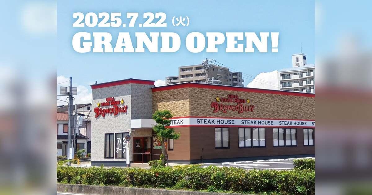 ステーキハウス ブロンコビリーを展開する株式会社ブロンコビリー(本社:愛知県名古屋市 代表取締役社長:阪口 信貴)は、兵庫県で6店舗目となる『ステーキハウス ブロンコビリー姫路神屋店』を7月22日(火) 11:00にオープンいたします。現在、東海を中心に全143店舗(東海61店舗・関東50店舗・関西28店舗・九州4店舗)を展開しており、姫路神屋店は144店舗目となります。