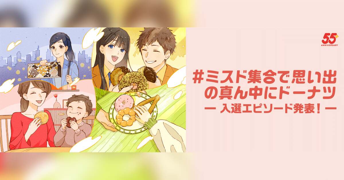 55周年のコミュニケーションコンセプトである「ミスド集合で」を合言葉に、55年間の中でミスタードーナツの店舗や、商品を囲んで楽しんでいただいたエピソードを募集し、ミスタードーナツ公式Xアカウントよりご応募いただきました。