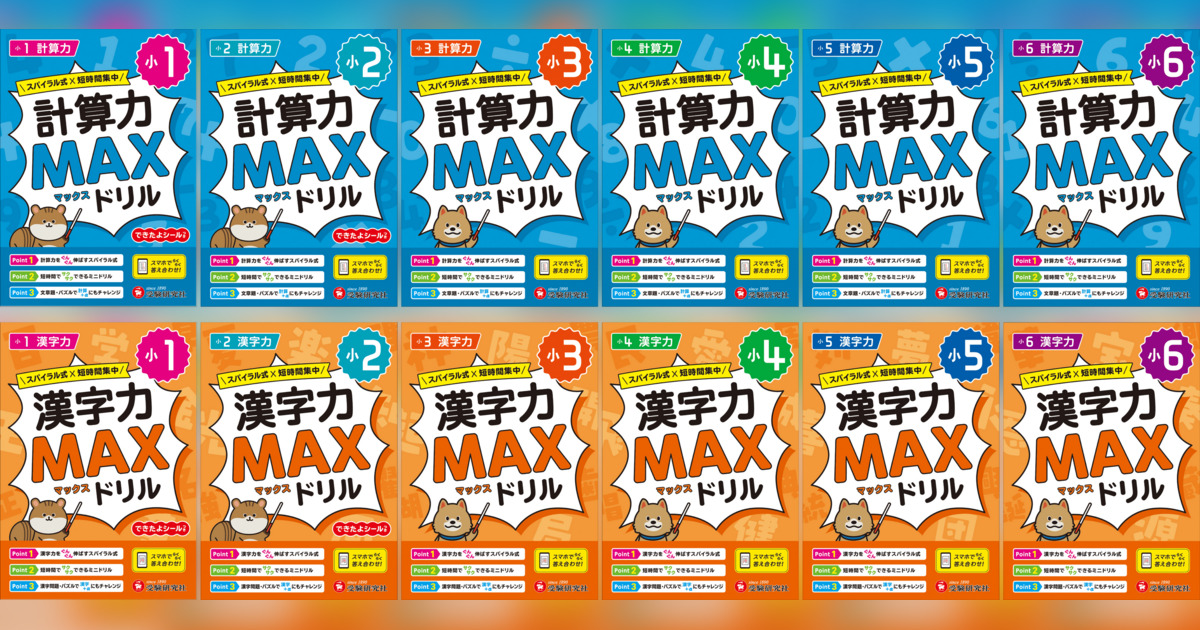 【“計算ミス” “すぐ忘れる漢字”】そんな小学生のつまずきに最適解!スパイラル式×短時間集中 『計算力/漢字力 MAXドリル』(小1~小6)が新登場!