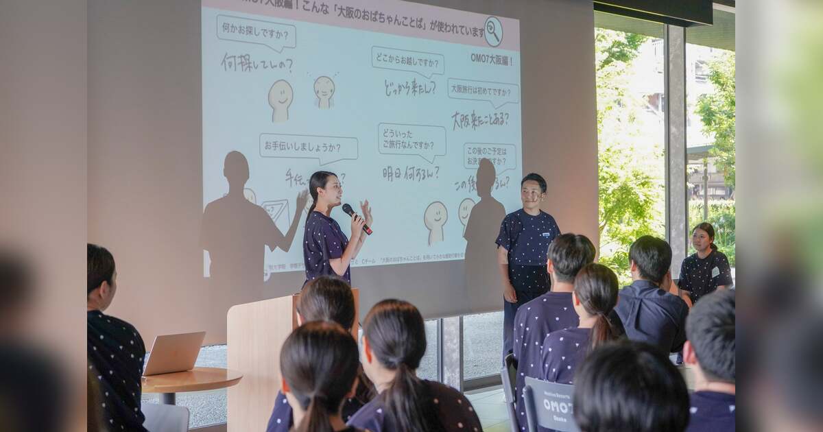 京都芸術大学大学院 学際デザイン研究領域の研究チーム「きっかけのコミュニケーションラボ」と、街ナカホテル「OMO7大阪(おも)by 星野リゾート」は共同で、OMO7大阪のサービススタッフを対象にしたコミュニケーション研修「おせっかいプロジェクト研修」を2025年6月に実施しました。