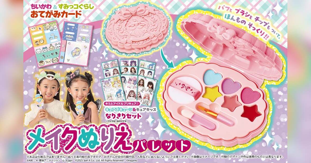 人気キャラクターの顔が描かれたシートにメイクをするようにぬりえができる、未就学児から小学生まで女子を中心に大人気の「メイクぬりえ」。
