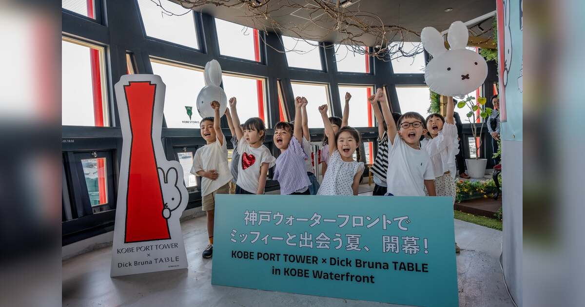 フェリシモは、本日7月22日、神戸ウォーターフロントが誕生70周年のミッフィーと地域一帯で取り組むサマーイベント「KOBE PORT TOWER × Dick Bruna TABLE in KOBE Waterfront」プレスプレビューを開催し、イベント内容を初公開しました。イベントには神戸ポートタワーから徒歩圏内の「神戸市立みなと保育所」の5歳児クラスの子どもたちが招待され、出発式を実施。ミッフィー探しに出発した子どもたちは屋上デッキや展望フロアをめぐり、「ミッフィーあそこにいた!」「5つ見つけた!」とミッフィーのお口を指で表現したりして大興奮。展望4階光のミュージアムの壁面にタッチし、デジタルアートで花火とともにミッフィーが現れると驚いた表情を見せるなど、さまざまな場所でミッフィーと出会い、見て触れてと多彩な体験に夢中の様子でした。