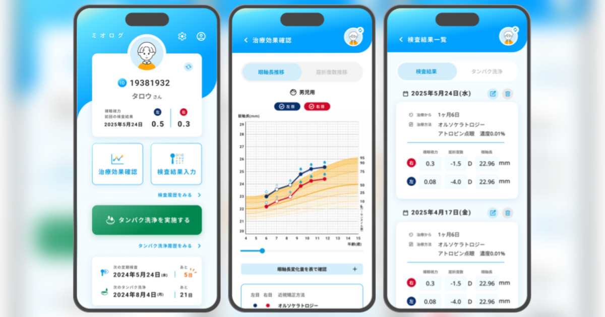 メニコン社が運営し、この度ドコドア社が開発を支援したアプリ「ミオログ」は、成長期にあるお子さまの近視進行を見守り、記録・管理することを目的とした近視管理アプリです。