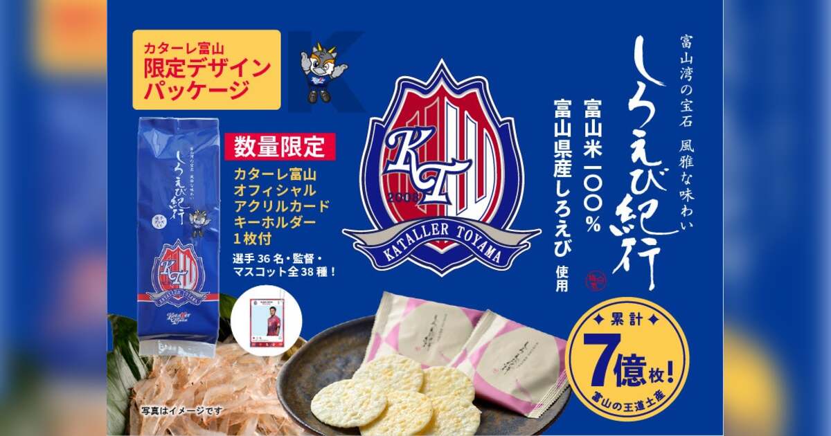 創業101年の老舗米菓メーカー日の出屋製菓産業株式会社(本社:富山県南砺市、代表取締役社長:川合洋平)は、カターレ富山とコラボし、今年もしろえび紀行「カターレ富山オリジナルパッケージ」を発売いたします。