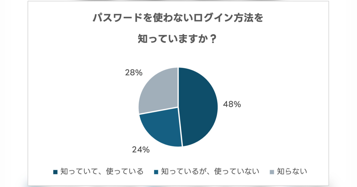 ・パスワードを使わないログイン方法の認知率は72%、使っている人は48%
