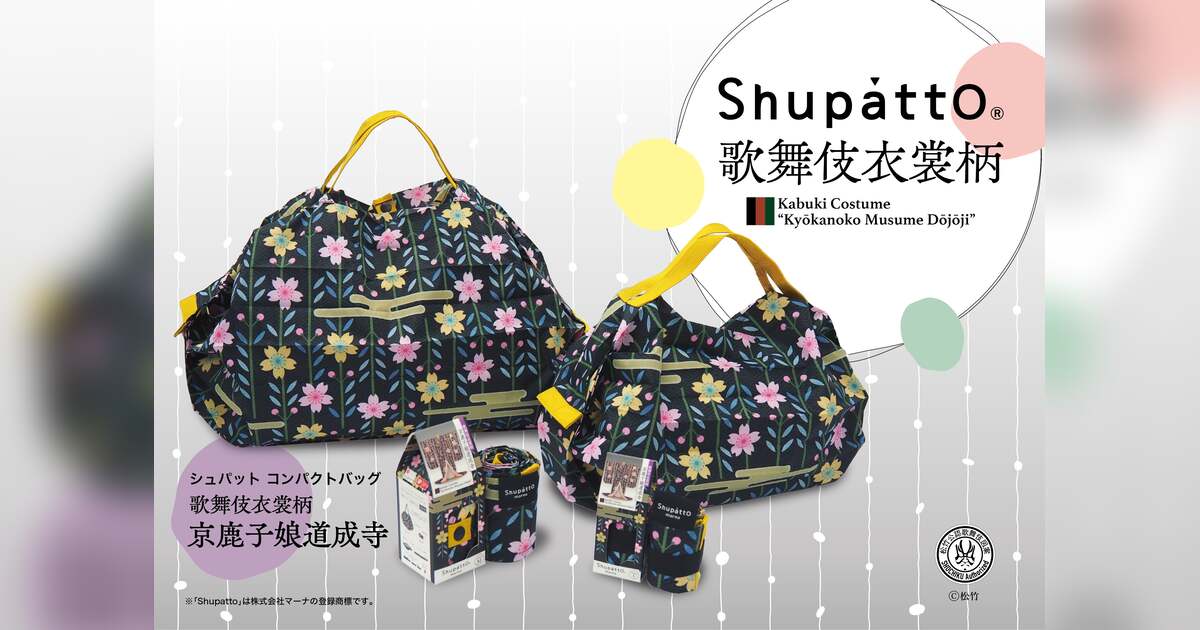 そんな「Shupatto」が、満開の桜の下、 白拍子花子が衣裳を次々と変えながら踊る舞踊の大曲『京鹿子娘道成寺』のオリジナルデザインが誕生しました。本商品に使用されている歌舞伎衣裳柄は白拍子花子の衣裳から着想を得たデザインで枝垂れ桜と霞文様が描かれています。