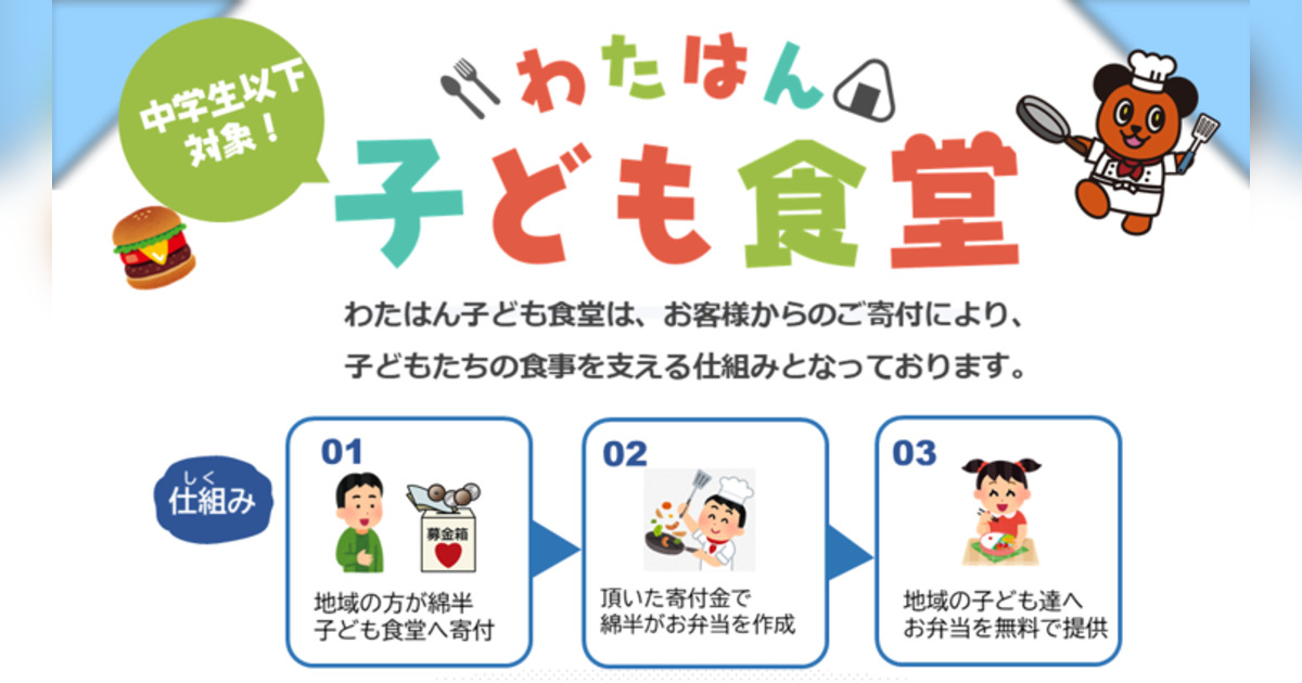 株式会社綿半ホームエイド(長野県長野市、代表取締役社長:永岡幸春)は、春休みに実施して大きな反響を呼んだ「わたはん子ども食堂」を、夏休み期間にも開催することを決定いたしました。