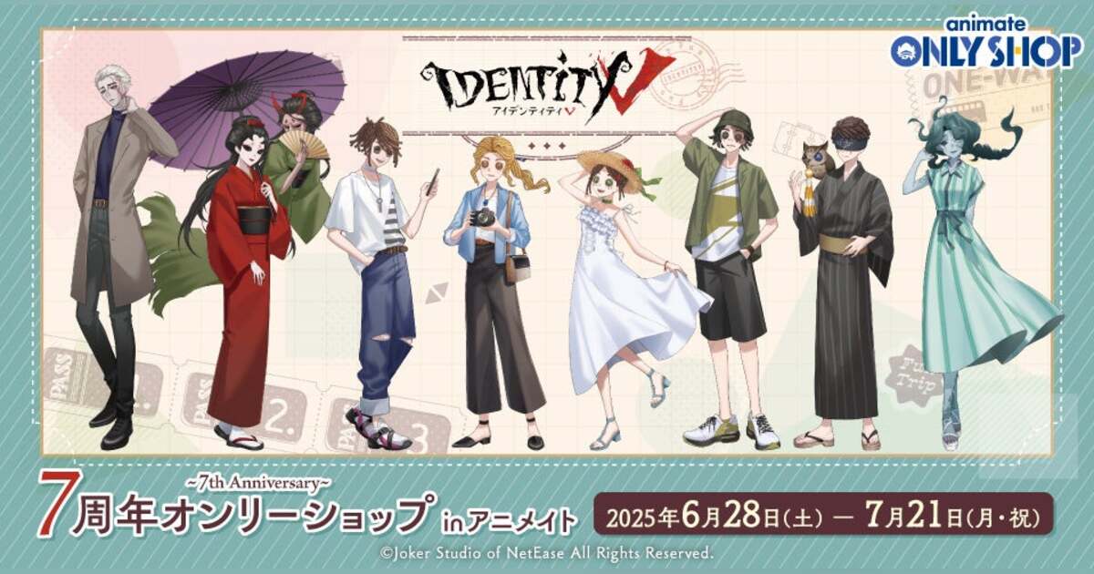 株式会社アニメイトは、2025年6月28日より「『Identity V』7周年オンリーショップ ~7th Anniversary~ inアニメイト」を開催いたします。また、同日より「『Identity V』フェア Fun Trip in アニメイト」を開催いたします。