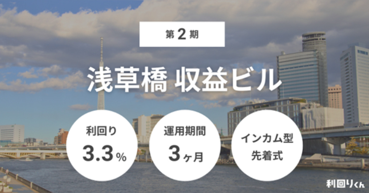 株式会社シーラホールディングス(本社:東京都渋谷区、代表取締役会長:杉本 宏之、証券コード:8887)のグループ会社である株式会社シーラ(本社:東京都渋谷区、代表取締役:湯藤 善行)が運営する不動産クラウドファンディングサービス「利回りくん」にて、新ファンド「第2期 浅草橋収益ビル」の募集を、明日6月10日(火)より開始いたします。 本ファンドの募集金額は4,041万円、想定利回りは年利3.3%を予定しており、安定的なインカムゲインを目指す投資家の皆さまに向けた内容となっております。
