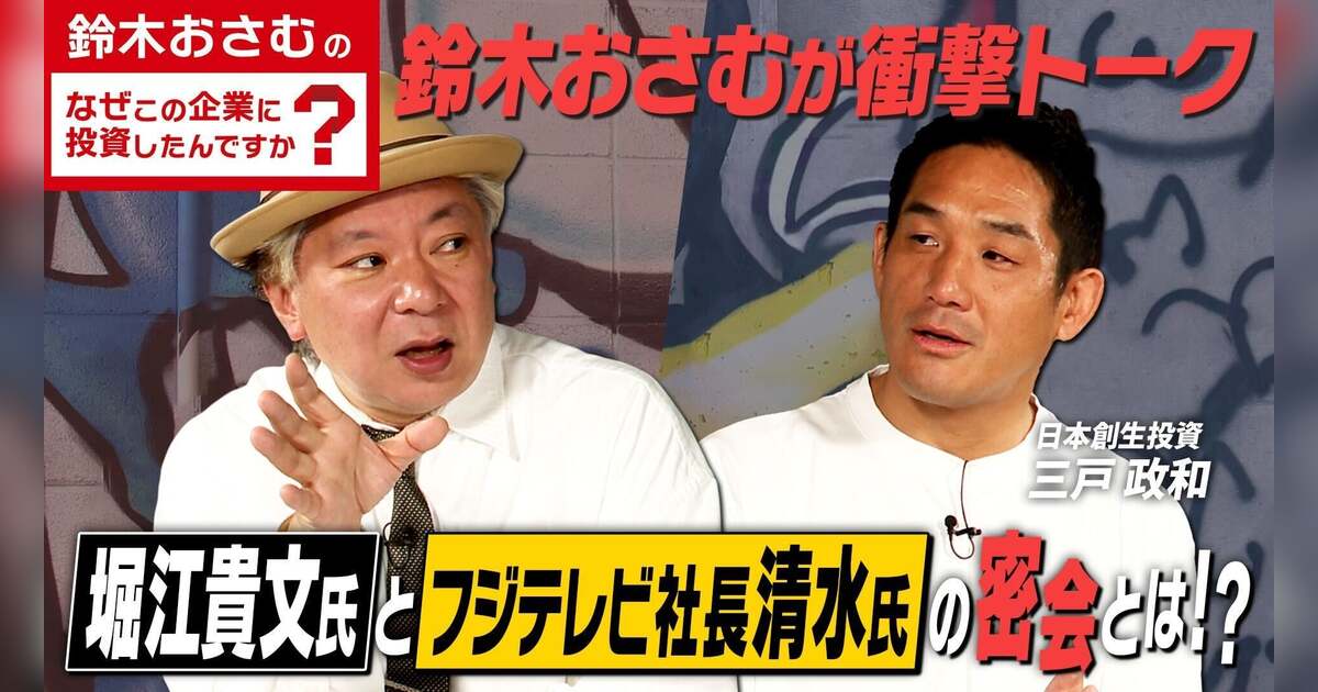動画内では、鈴木おさむ氏と元SBIの投資家三戸政和氏が、フジテレビの時期社長について言及します。