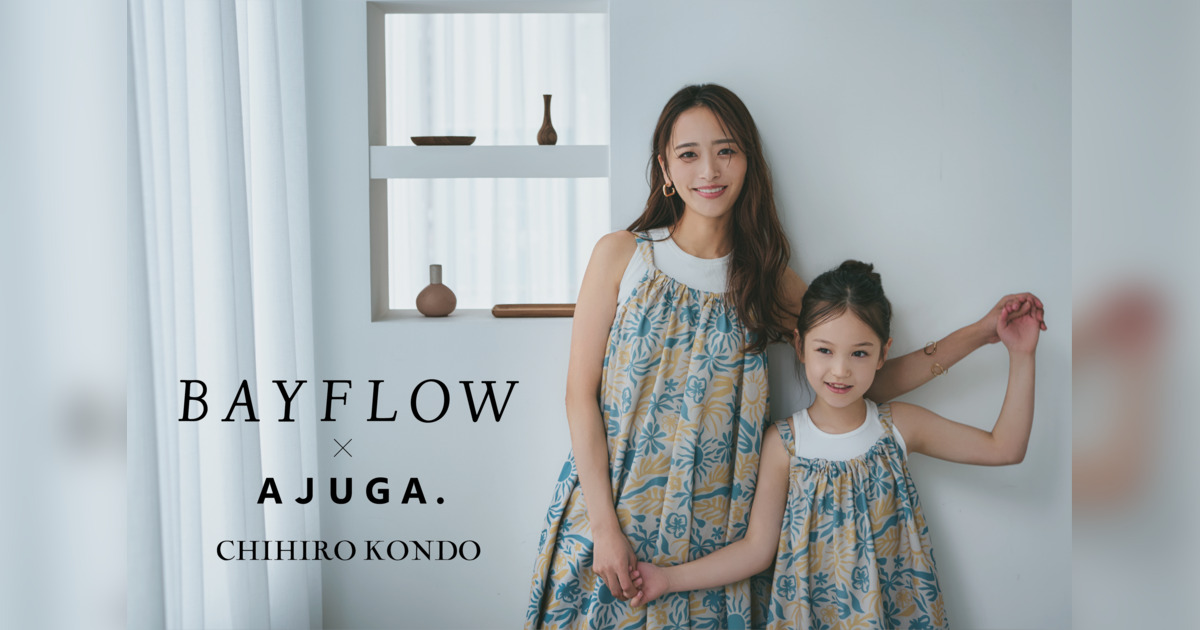 株式会社アダストリア(本部︓東京都渋⾕区渋⾕ 2-21-1、代表取締役社⻑︓⽊村 治)が展開す るライフスタイルブランド「BAYFLOW(ベイフロー)」とモデルでタレントの近藤千尋さんがプロデュースする ブランド「AJUGA.(アジュガ)」が初のコラボレーションを展開し、親⼦でお揃いコーディネートができるウィ メンズとキッズアイテムが登場します。2025 年 6⽉10⽇(⽕)より公式WEBストア and ST(アンドエ スティ)で先⾏予約を開始します。また、2025 年 7⽉11⽇(⾦)よりBAYFLOW全店舗と公式WEB ストア and ST(アンドエスティ)、ZOZOTOWNにて通常販売をスタートします。