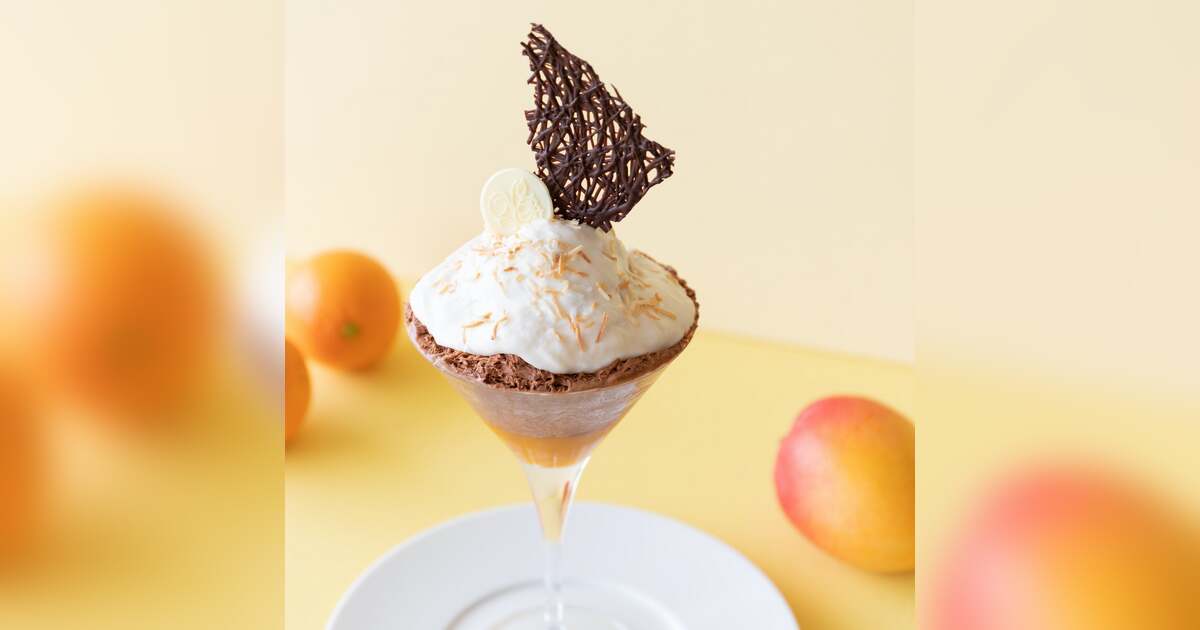 マンゴー&オレンジのコンフィチュールを注いだグラスに、エクアドル産カカオを使ったこだわりのチョコレート氷をやさしく削り、中にはノンホモミルクのアイスを忍ばせました。上からかけるカカオの果肉部分「カカオパルプ」を使用したふわっととろけるエスプーマ(泡状のムース)と一緒にご堪能ください。