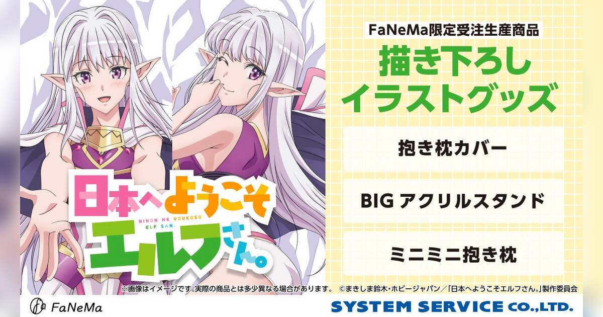 システムサービス株式会社(本社:東京都豊島区、代表取締役社長:田村宗弘)は、アニメ・マンガ・ゲーム作品等のキャラクター商品の企画・製作・販売をする自社ECサイト「FaNeMa」(URL:https://fanema.jp/)にて、『日本へようこそエルフさん。』より「抱き枕カバー」「ミニミニ抱き枕」「BIGアクリルスタンド」を発売いたします。