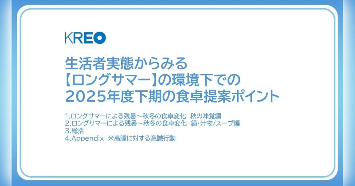 生活者視点をベースにマーケティングとプロモーションを提案する株式会社クレオ(本社:東京都千代田区、代表取締役社長:横井 司)は、2025年6月12日(木)より独自の調査結果を活用した「生活者実態からみる 【ロングサマー】の環境下での2025年度下期の食卓提案ポイント」のレポートを発売いたします。