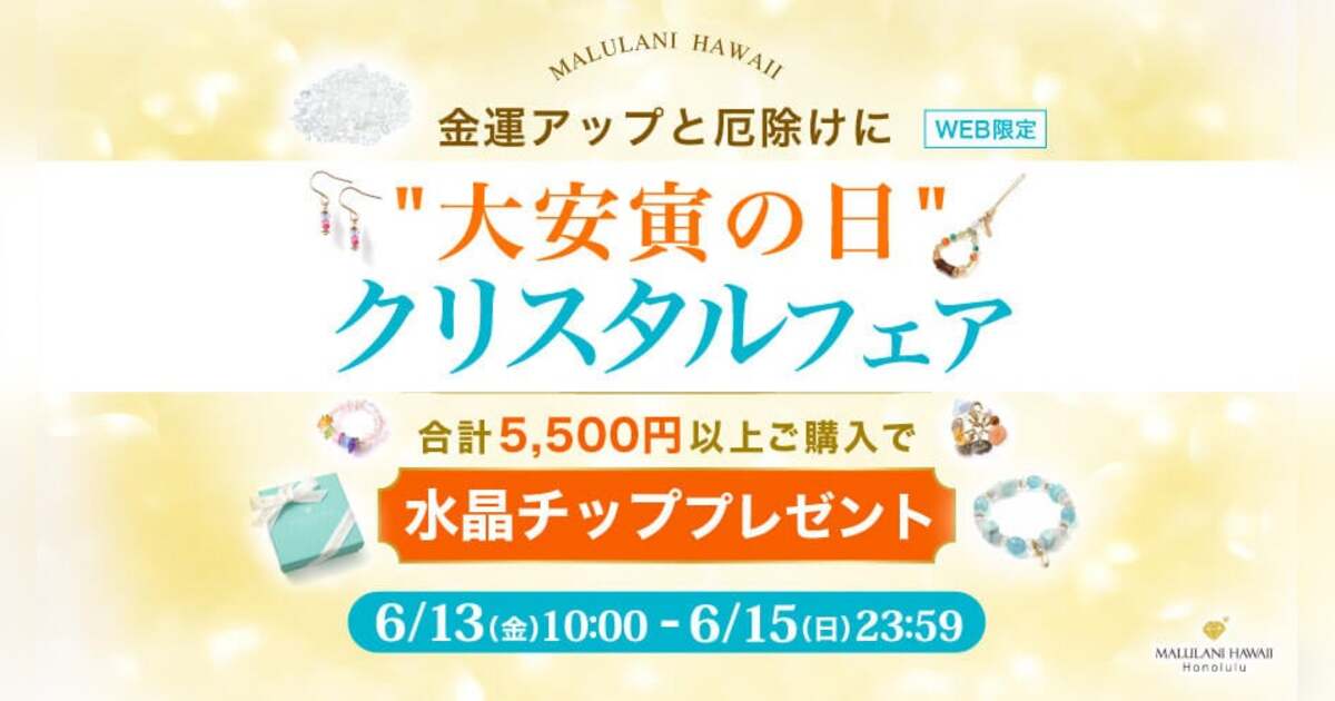 金運アップと厄除けに【浄化水晶チッププレゼント】”大安寅の日”クリスタルフェア|ハワイ発パワーストーンブランド・マルラニハワイ
