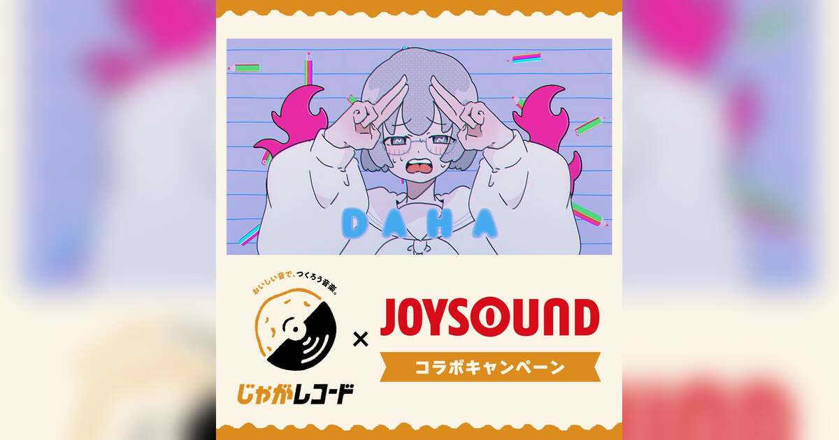 株式会社エクシングが展開する通信カラオケ「JOYSOUND」では、“おいしい音で、つくろう音楽。”をコンセプトに誕生したカルビー史上初の音楽レーベル『じゃがレコード』の第一弾の楽曲として、クリエイターユニット・niKuが手がけた「DAHA」が、本日6月12日(木)よりカラオケ配信します。また、6月18日(水)から、ミュージックビデオを背景に歌える「本人映像カラオケ」もお楽しみいただけるほか、カルビー商品の詰め合わせが当たる「Calbee Future Labo『じゃがレコード』×JOYSOUND コラボキャンペーン」が、6月18日(水)からスタートします。