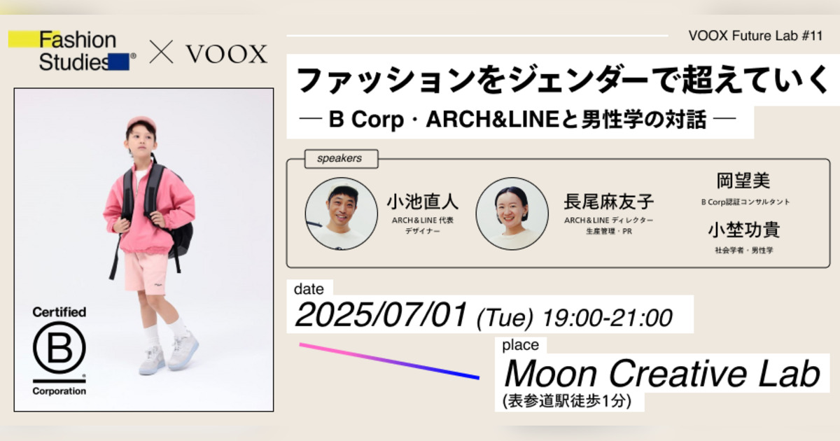 7/1開催!「ファッションをジェンダーで超えていく ―B Corp・ARCH&LINEと男性学の対話」VOOX Future Lab #11 FashionStudies®︎共同開催