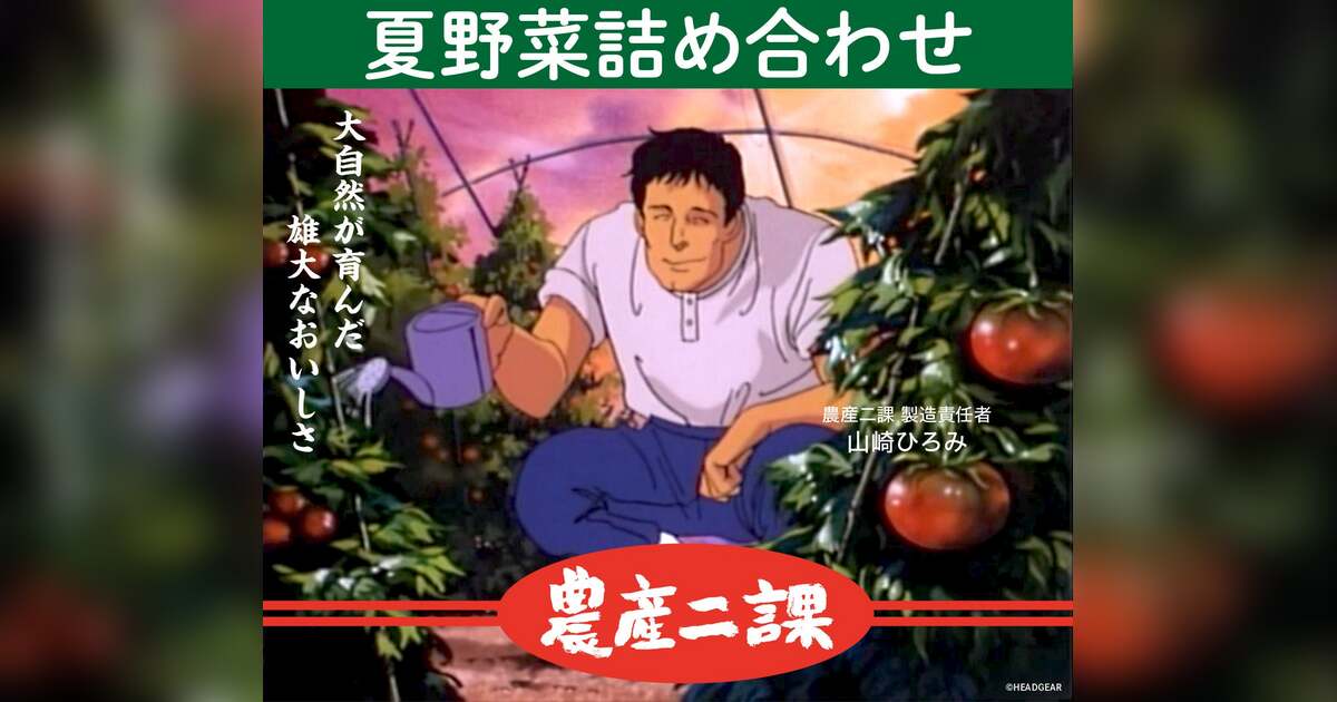 『機動警察パトレイバー』に登場する山崎ひろみ完全監修、特車二課第2小隊の野菜ブランド「農産二課」夏野菜セットの販売を6月11日より開始いたしました。