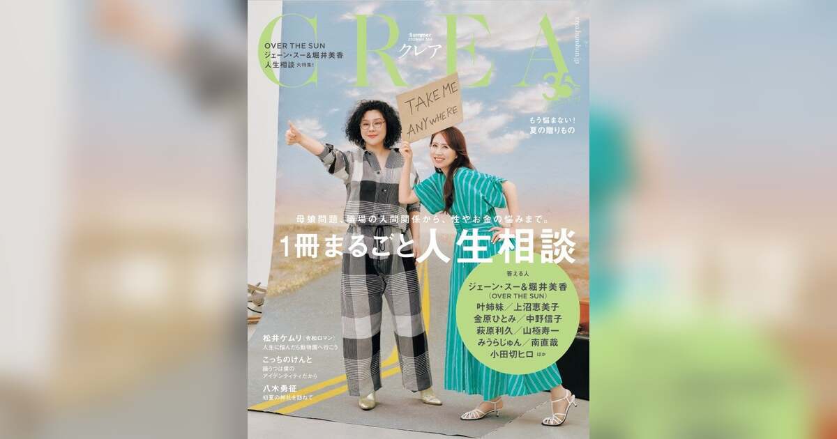 「1冊まるごと人生相談」はそんな初期CREAを代表する、1990年代の名特集です。2025年夏号でリバイバルするにあたっては、〝おばさん〟という女性像を肯定し、その人気が社会現象化しているPodcast番組『ジェーン・スーと堀井美香の「OVER THE SUN」』(TBSラジオ)とのコラボを敢行。MCのジェーン・スーさんと堀井美香さんが表紙に登場し、さらに読者からのお悩みに12ページにわたって回答いただき、大きな反響を呼んでいます。