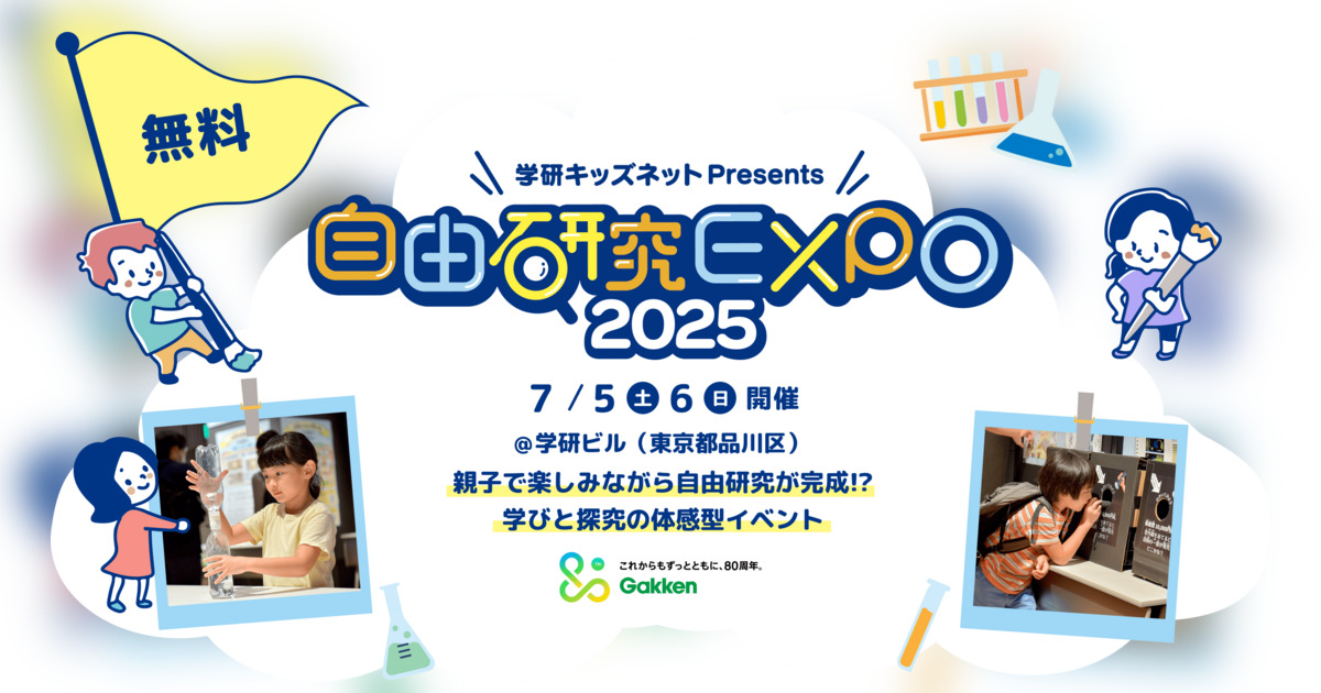 株式会社 学研ホールディングス(東京・品川/代表取締役社長:宮原博昭)のグループ会社、株式会社 Gakken(東京・品川/代表取締役社長:南條達也)が運営する小・中学生とその保護者・教員のための教育ポータルサイト『学研キッズネット』(https://kids.gakken.co.jp)は、7月5日(土)、7月6日(日)の2日間にわたり、夏休みの自由研究を応援する体験型イベント「自由研究EXPO 2025」を学研本社ビル(東京都品川区)にて開催いたします。