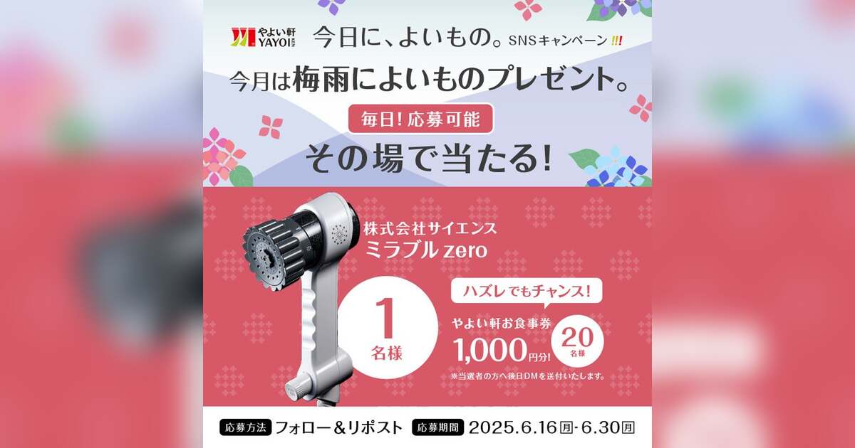 (ミラブルzero 1名様、やよい軒お食事券1,000円分 20名様)