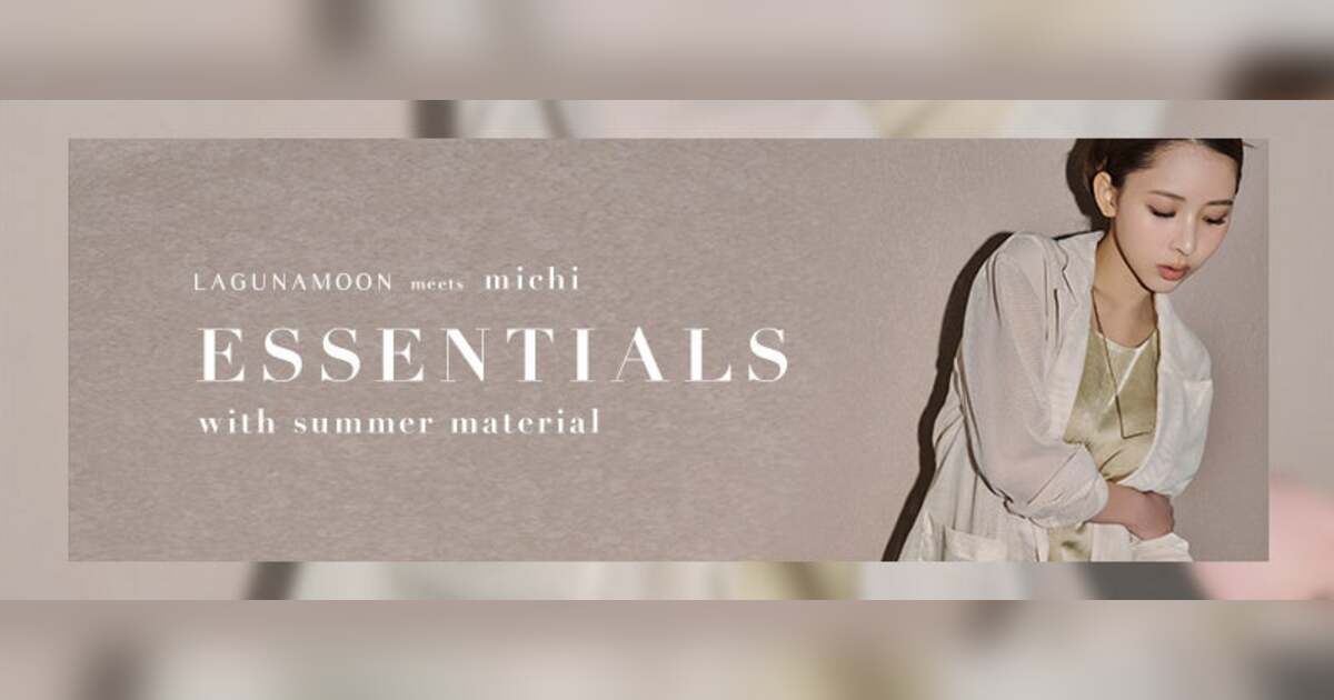 この夏、一枚は持っておきたいLAGUNAMOONイチオシのアイテムたちをラインナップ。洗練された雰囲気を纏うミチさんが着こなすスタイリングは、気温が高まる夏の日でも涼やかで上品な装いを叶えてくれる。