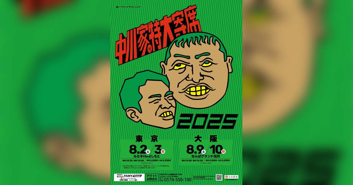 このたび、中川家による単独ライブ『中川家の特大寄席2025』を、 8月2日(土)・3日(日)に東京・ルミネtheよしもとにて、 8月9日(土)・10日(日)にて大阪・なんばグランド花月にて開催いたします。オール新ネタ、毎回完売となる単独ライブです。また8月3日(日)の東京公演については、全国17劇場のイオンシネマでライブビューイングを実施いたします。
