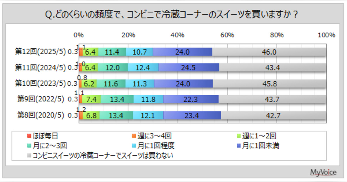 マイボイスコム株式会社(東京都千代田区、代表取締役社長:高井和久)は、12回目となる『コンビニスイーツ』に関するインターネット調査を2025年5月1日~7日に実施しました。