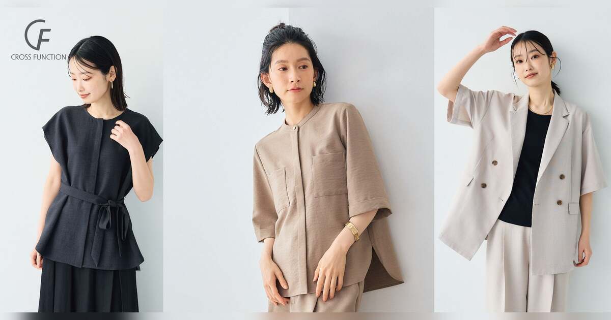 「CROSS FUNCTION(クロス ファンクション)」は、累計20万枚販売(※)の実績があり、昨年から人気のある「サマナチュラ」のリネンライクシリーズから、一部新色「モカ」を含めたブラウス3型、ハーフスリーブジャケット、ワイドパンツの5型をオンラインストアにて追加販売を開始、一部欠品していた人気商品も再販を開始いたしました。