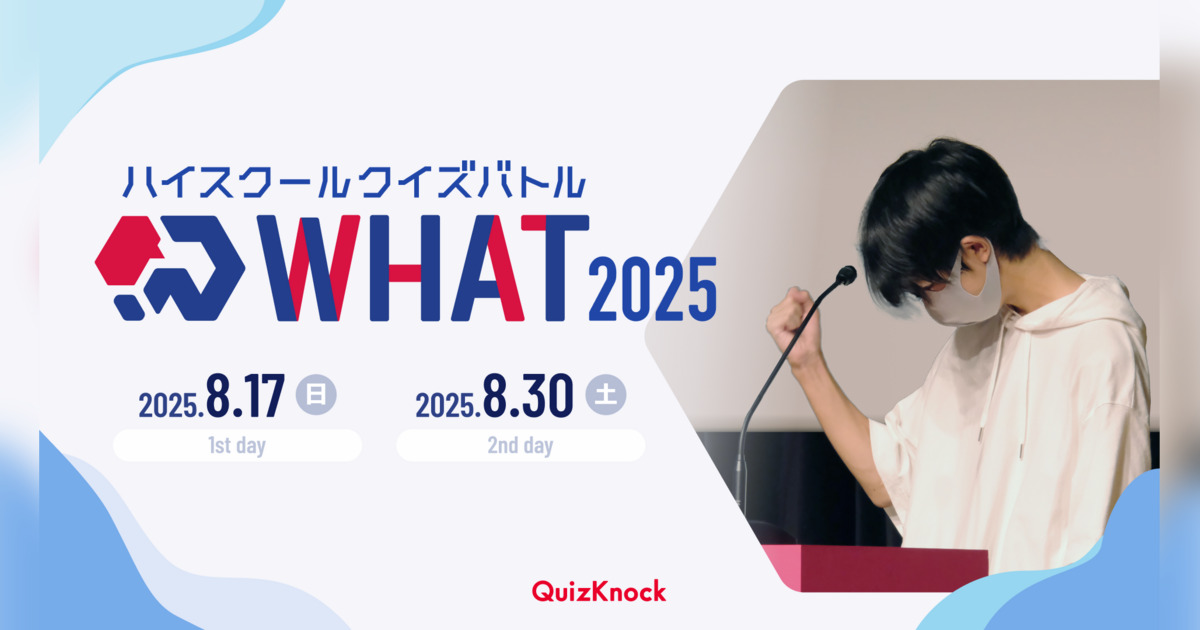 株式会社baton(東京都品川区、代表取締役 衣川洋佑)が運営するQuizKnockは、高校生以下を対象とするクイズ大会「ハイスクールクイズバトル WHAT 2025( https://what.quizknock.com/ )」の参加エントリー受付を2025年6月14日(土)10時から開始いたします。