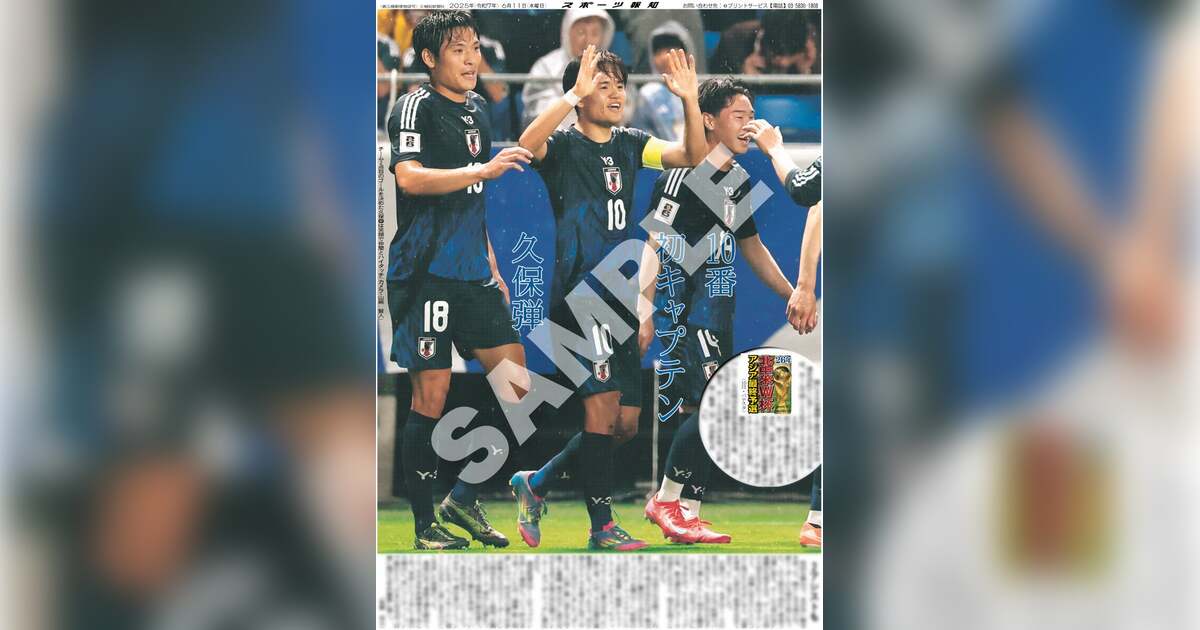 スポーツ報知を発行する報知新聞社(代表取締役社長・長谷川剛)は新聞の一部紙面をコンビニエンスストアのマルチコピー機からプリントできる「スポーツ報知コンビニプリント」サービスをスタートし、続々と新しい紙面が登場しています。スポーツ紙ならではの大きな写真を使った紙面をプリント版として販売。スポーツカテゴリーからサッカーの紙面が新登場。インドネシア戦で1得点2アシストと活躍した久保建英選手の喜びの表情を伝えています。感動を大きな写真とともに味わえます。